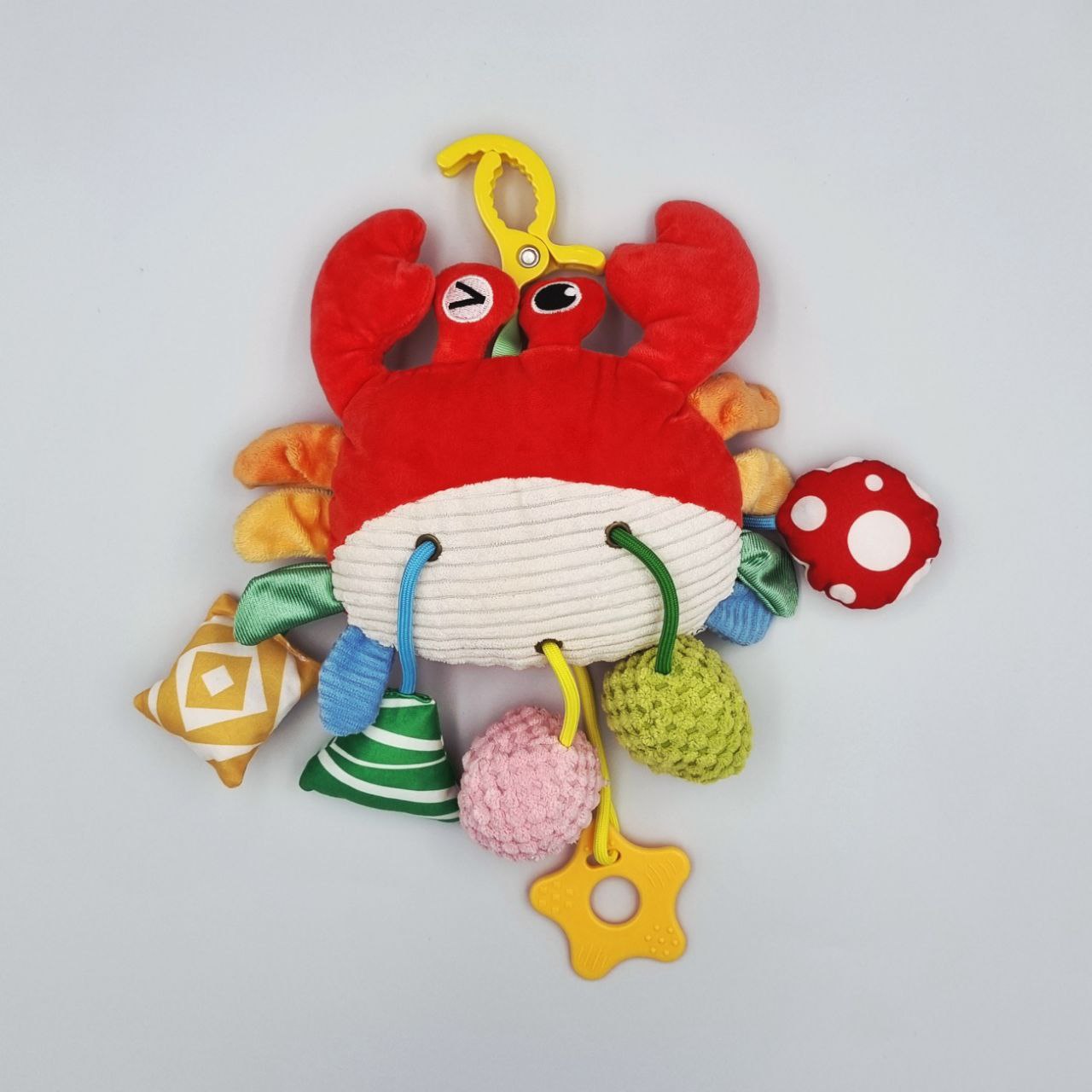 Engage your baby’s attention with a combination of soft textures, colourful shapes and gentle jingles to spark curiosity and develop hand-eye coordination
